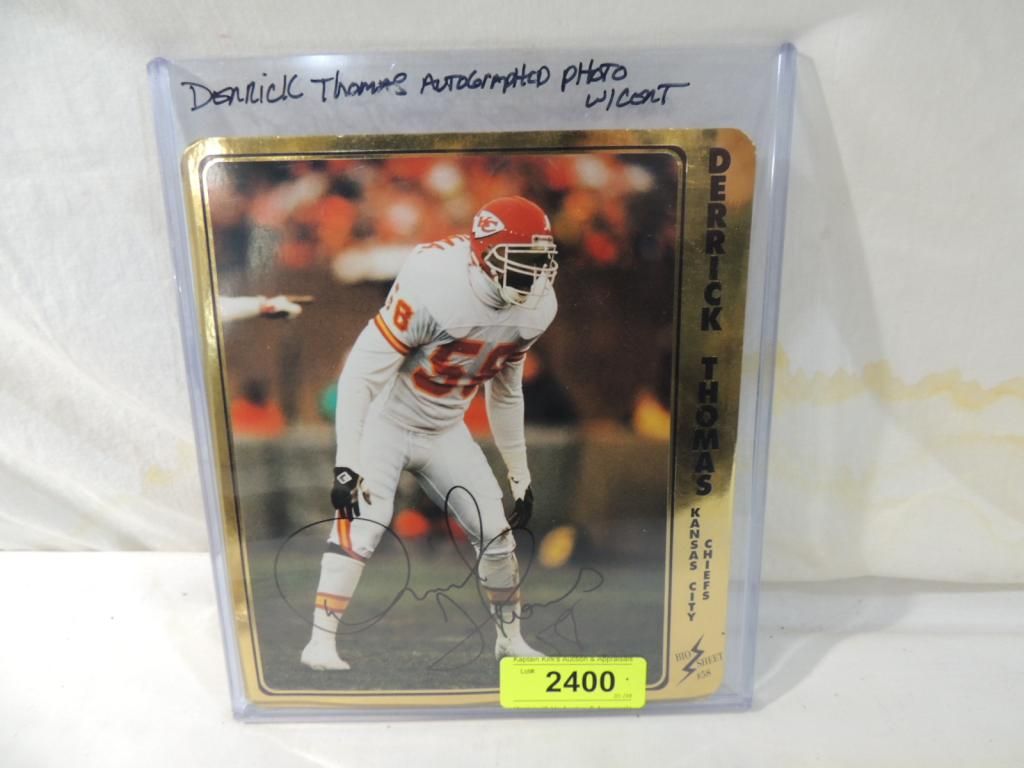 DERRICK THOMAS AUTOGRAPHED PHOTO WITH CERTIFICATE OF AUTHENTICITY KANSAS CITY CHIEFS COA PLEASE BE ADVISED, AND INFORMED REGARDING SIGNATURES OR AUTOGRAPHS THAT WE SELL AT AUCTION: WE ARE NOT AUTHENTICATORS, AND WE DO NOT AUTHENTICATE, OR VALIDATE ANY A