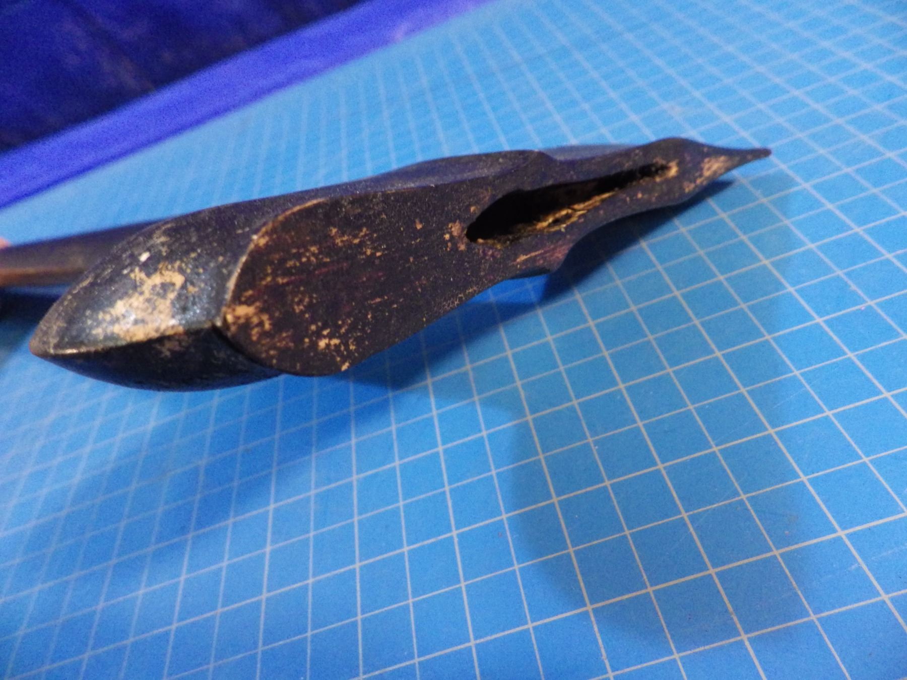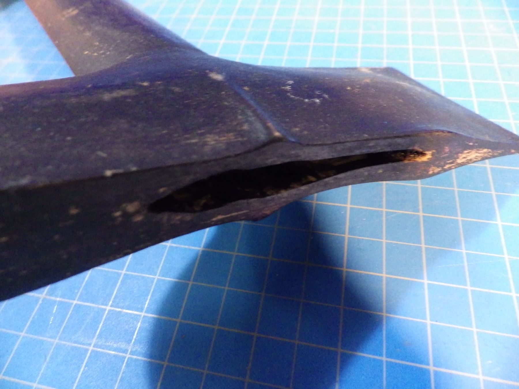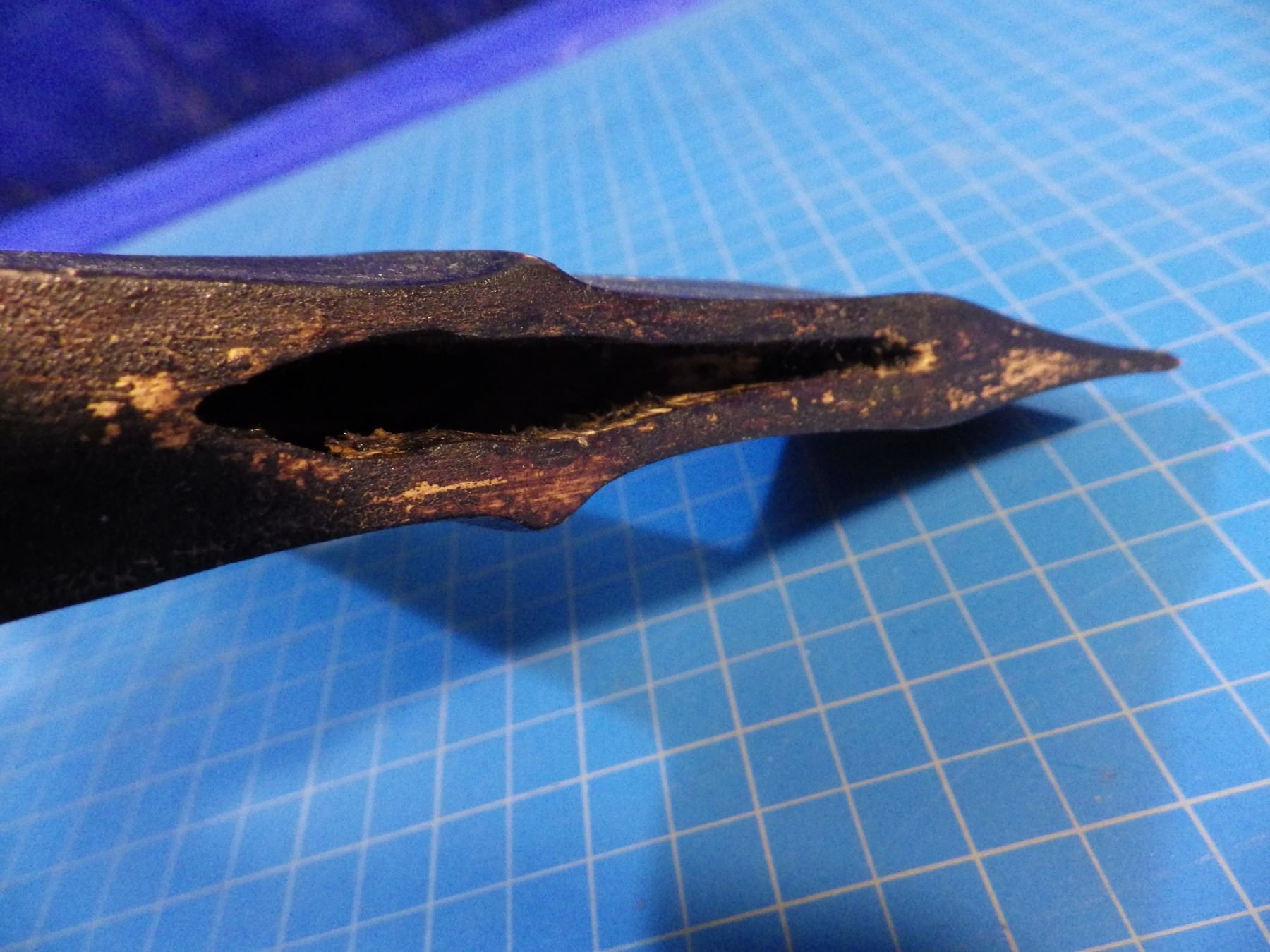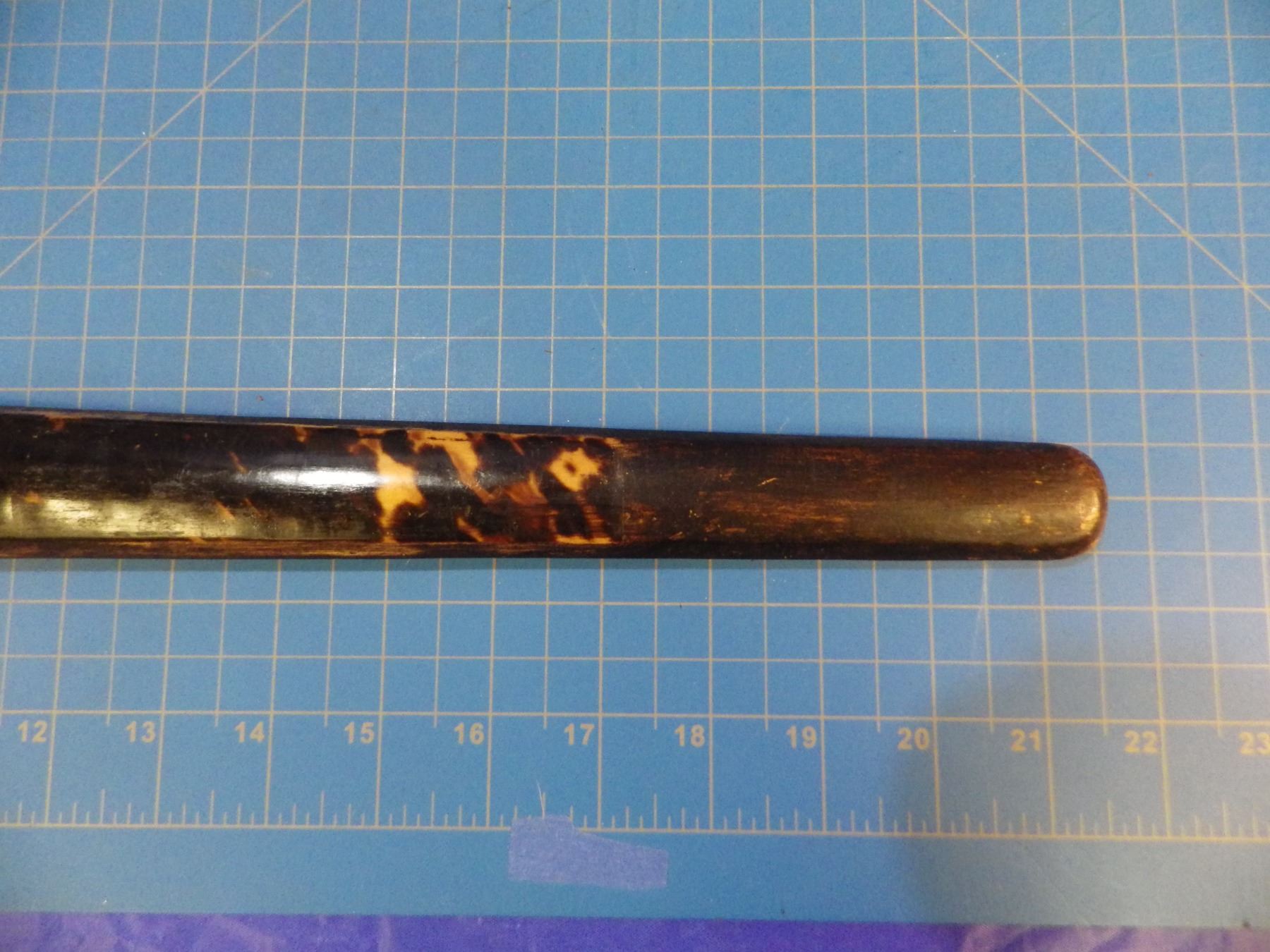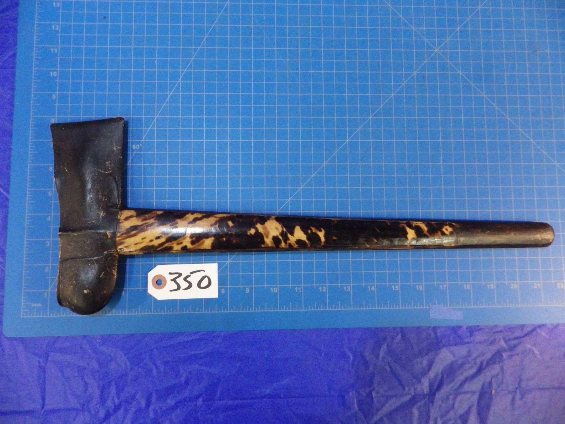 Possibly a Kris or Keris Javanese dagger scabbard. A small sword blade will insert approx. 16 inches into the hollow body of the item. Item made of an unknown wood. additional pictures added.
