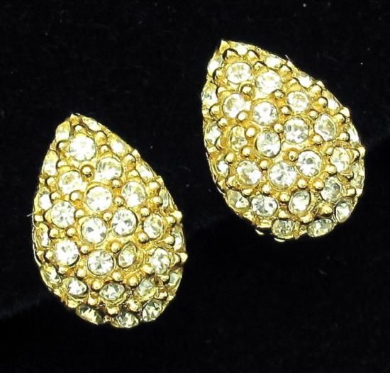 DESIGNER CHRISTIAN DIOR Rhinestone Dainty Clip On Petite Designer Earrings, Signed, measures apprx 9/16in x 3/8in