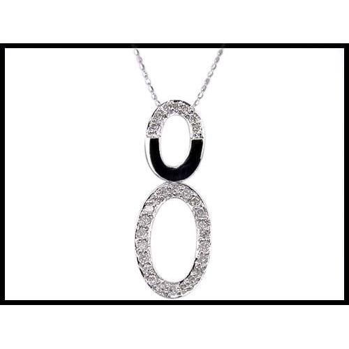 This 14K white gold diamond pendant is set with 29 diamonds to create an elegant and tasteful jewel. Diamond color G, Clarity is SI. The pendant is 23mm (7/8") long x 9mm (3/8") wide. No chain.