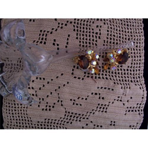 THIS IS A BEAUTIFUL AND VERY SPARKLY PAIR OF CLIP ON VINTAGE EARRINGS. THEY ARE MARKED BEAU JEWELS WHICH IS WONDERFUL DESIGNER JEWELRY ONLY SOLD IN THE FINEST OF STORES. THEY ARE DARK TOPAZ COLOR AND LIGHTER SHADES OF BROWN AND ARE ALL PRONG SET. TRULY AMAZING AND ONE OF A KIND.