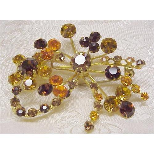 GORGEOUS VINTAGE RHINESTONE BROOCH,IT COMES IN BEAUTIFUL WARM TONES OF AMBER COLORING AND TOPAZ COLORING - AS PER PICTURE,SIGNED:"MADE IN AUSTRIA", EXCELLENT CONDITION .Measures a bit over 2" long.THANKS for looking!