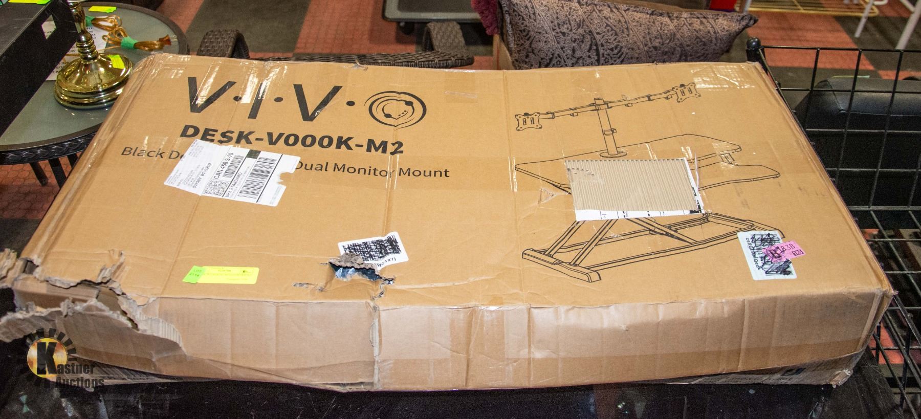 DESK WITH DUAL MONITOR MOUNT IN BOX