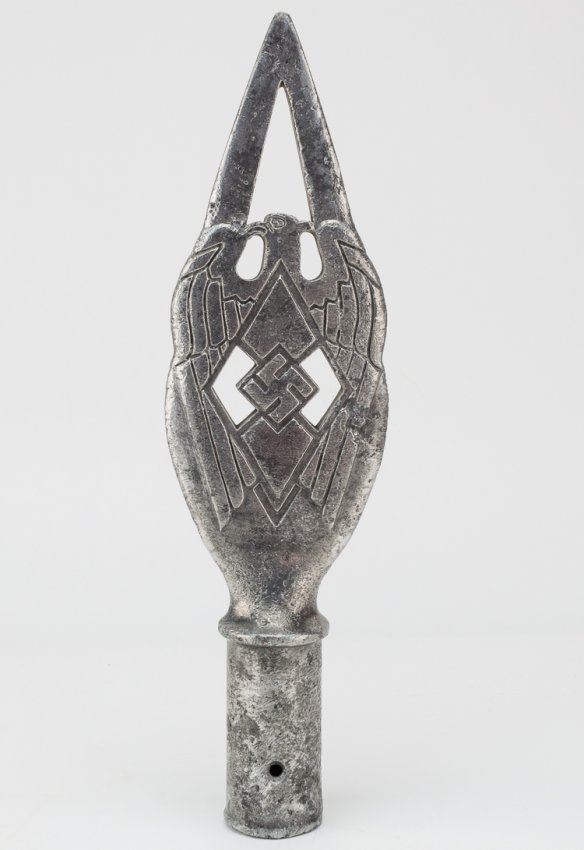 Pole top carried with a D.J. regimental flag, 12 ?" tall, heavily pitted and then apparently clumsily cleaned. Should be seen.