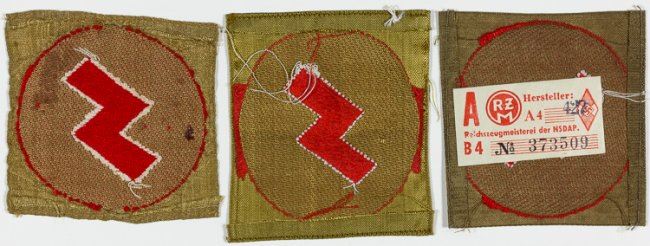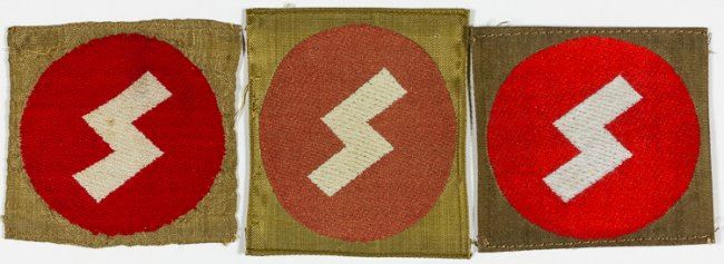 Lot of three D.J. rune arm patches, each about 2 ?? sq., one bearing an ?A? RZM paper tag on verso. Very good.