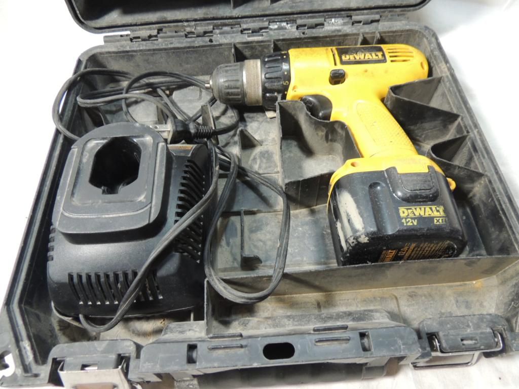DEWALT 12.0 VOLT CORDLESS ADJUSTABLE CLUTCH DRIVER/DRILL WITH CHARGER AND BATTERY. AS SHOWN. SEE PHOTO FOR MORE DETAILS.