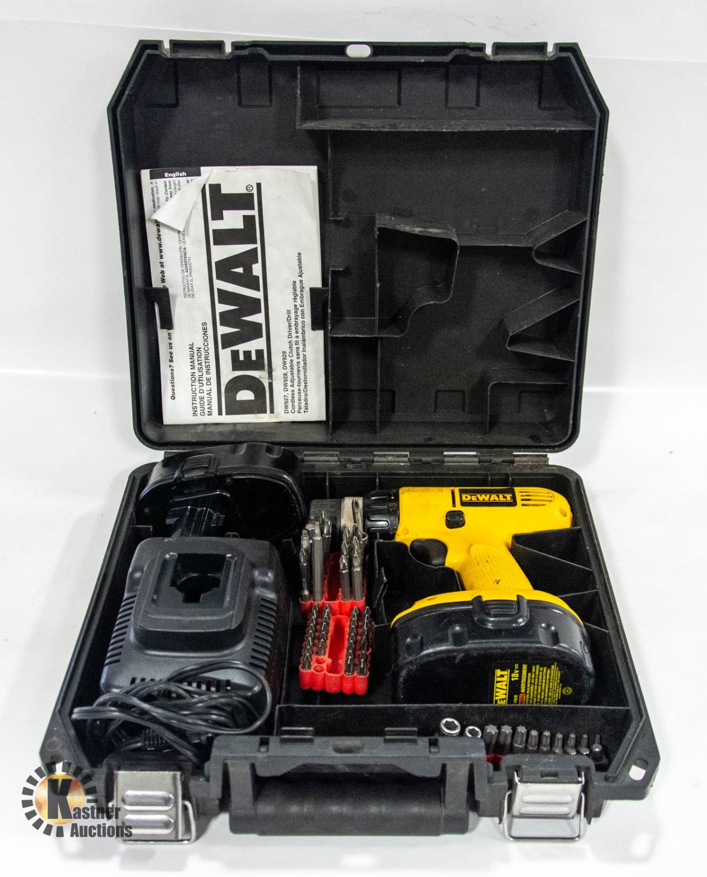 DEWALT 18 V DRILL, BATTERY, CHARGER, ACCESSORIES