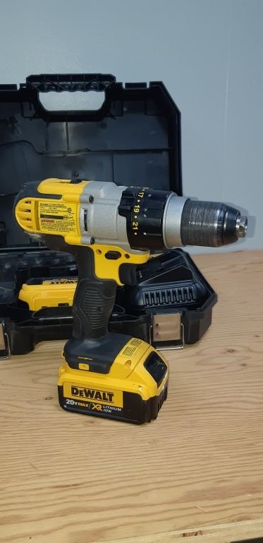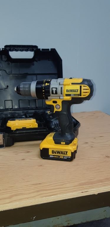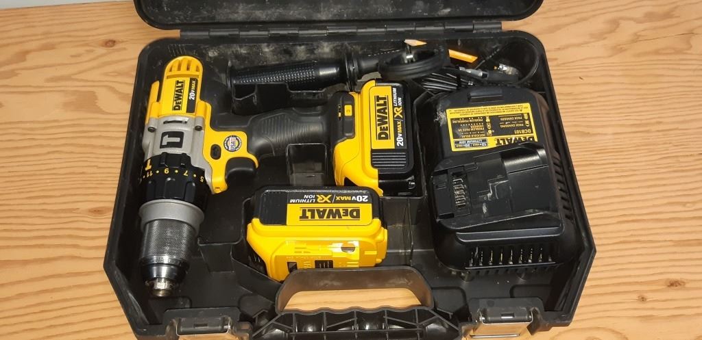 DEWALT 20V MAX DRILL WITH CASE CHARGER, 2 BATTERIES & HANDLE