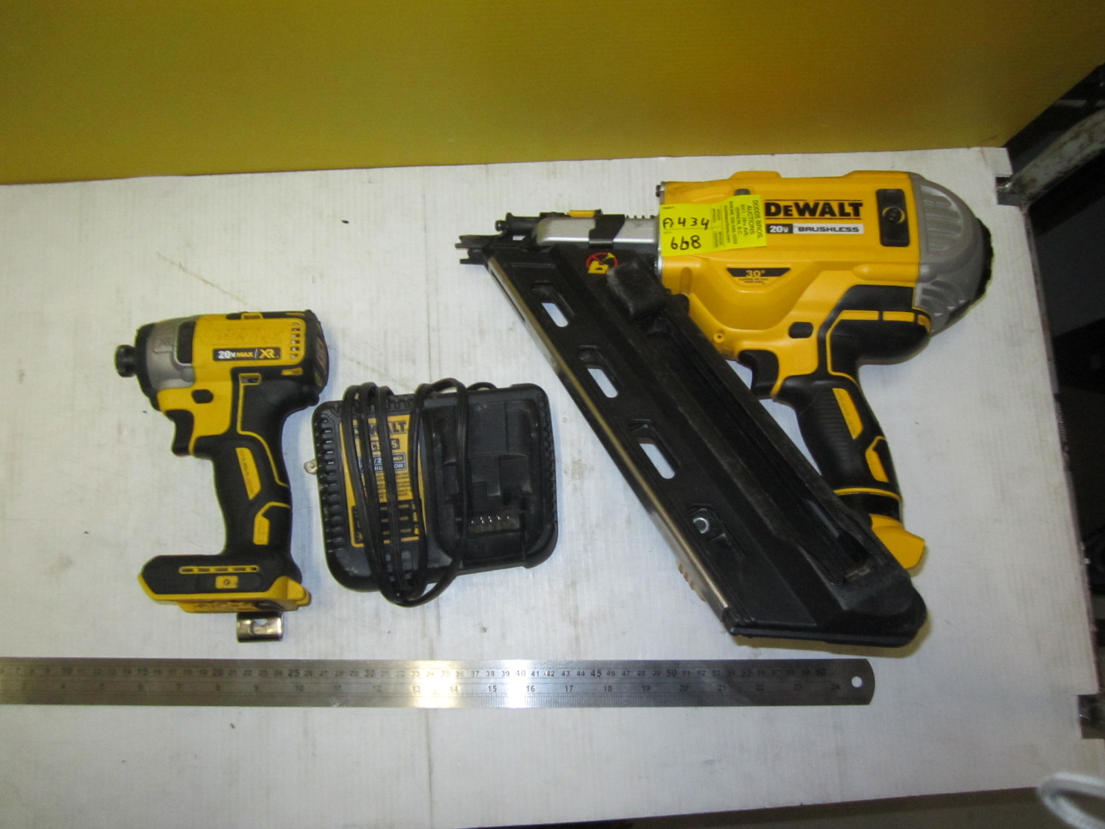 DEWALT CORDLESS NAIL GUN W/CORDLESS IMPACT GUN & CHARGER - NO BATTERIES