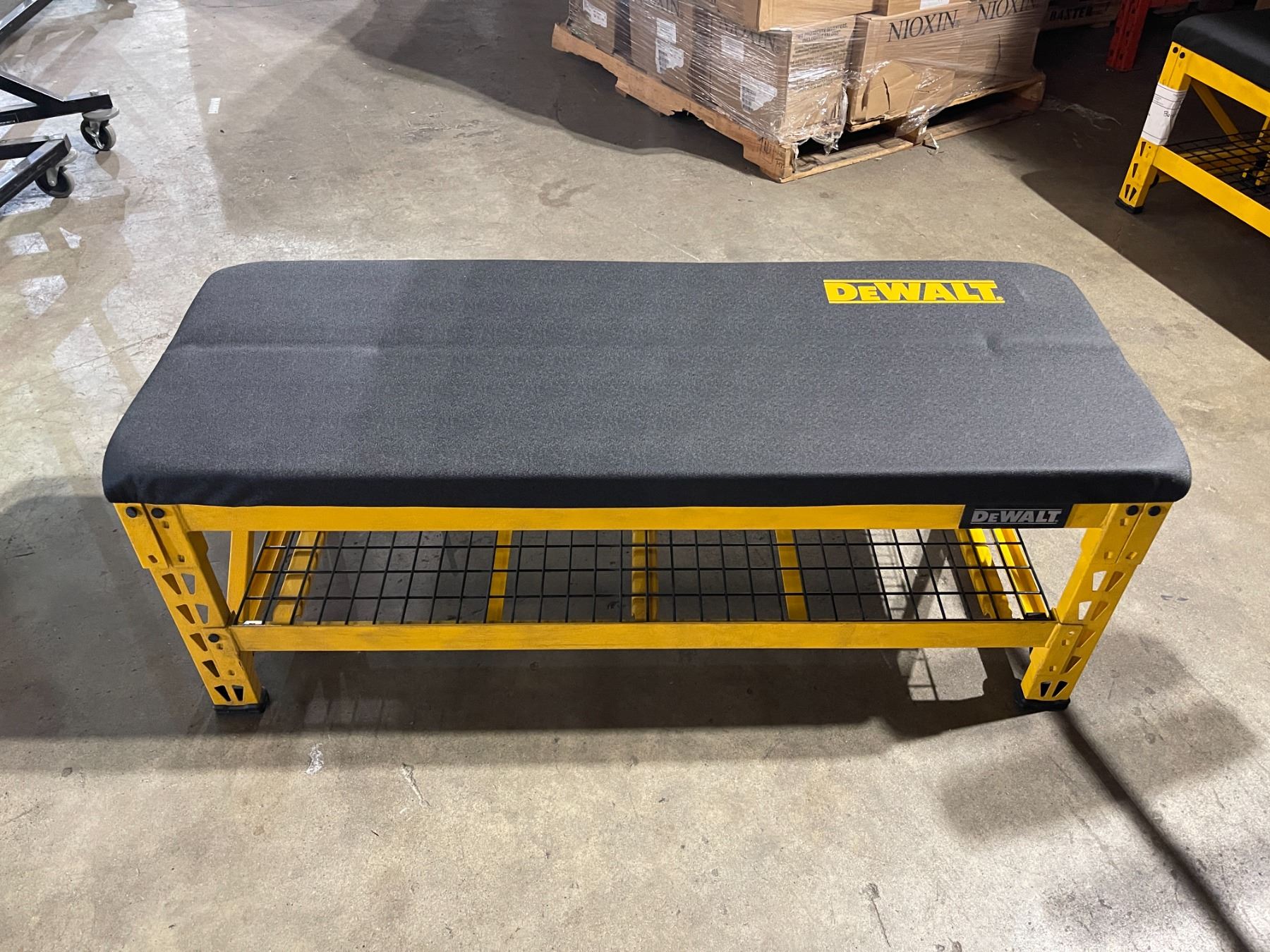 DEWALT D Garage Bench with Adjustable Wire Grid Storage Shelf in Yellow - (approx 20" H x 50" W x 18" D) - retails $400