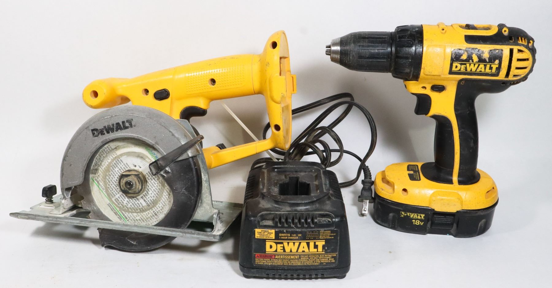 DEWALT DW936 5-3/8" TRIM SAW WITH ONE BATTERY AND CHARGER. TESTED WORKING