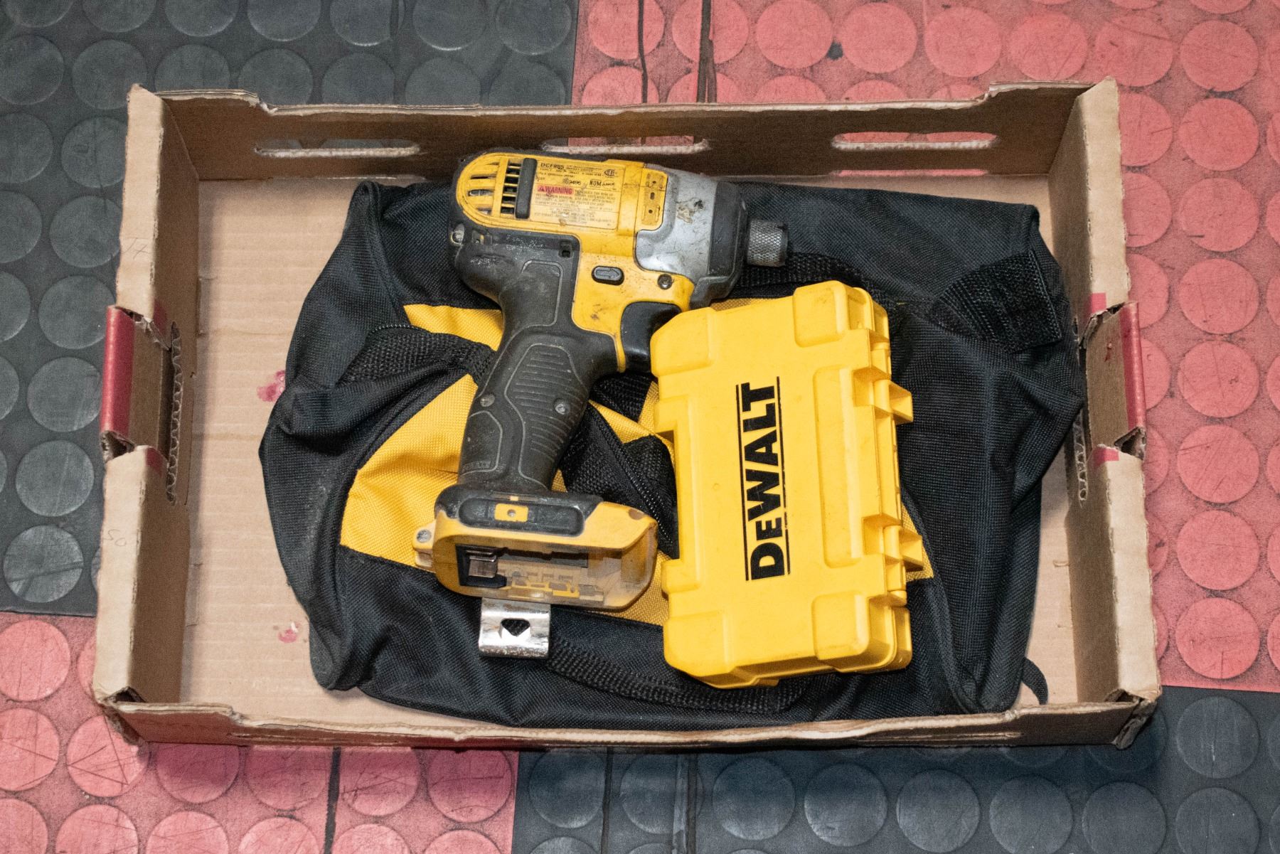 DRIVER WITH DEWALT BIT SET AND DEWALT CANVAS TOOL BAG (WORKING) **ALL ITEMS MUST BE REMOVED BY 5PM SATURDAY, MAY 10TH 2025. ALL REMAINING ITEMS WILL BE SUBJECT TO A $6.00 PER DAY STORAGE CHARGE. ANY ITEMS REMAINING AFTER MONDAY, MAY 26TH 2025 WILL BE CONSIDERED FORFEITED. NO REFUNDS WILL BE ISSUED FOR FORFEITED ITEMS. TO SCHEDULE A PICK UP APPOINTMENT CLICK HERE
