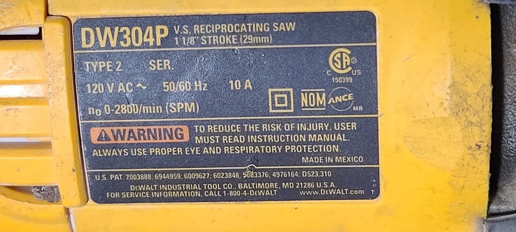 DEWALT RECIPRICATING SAW DW304P