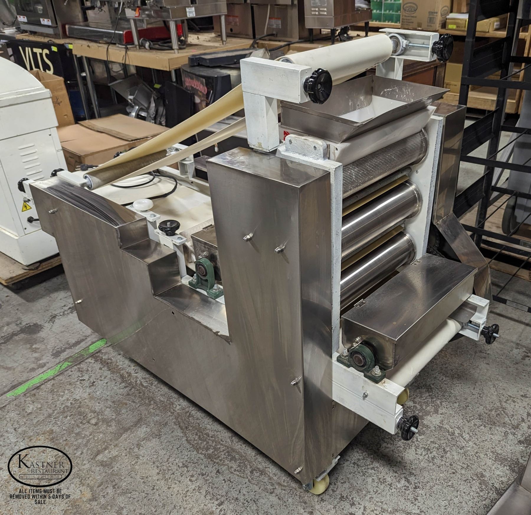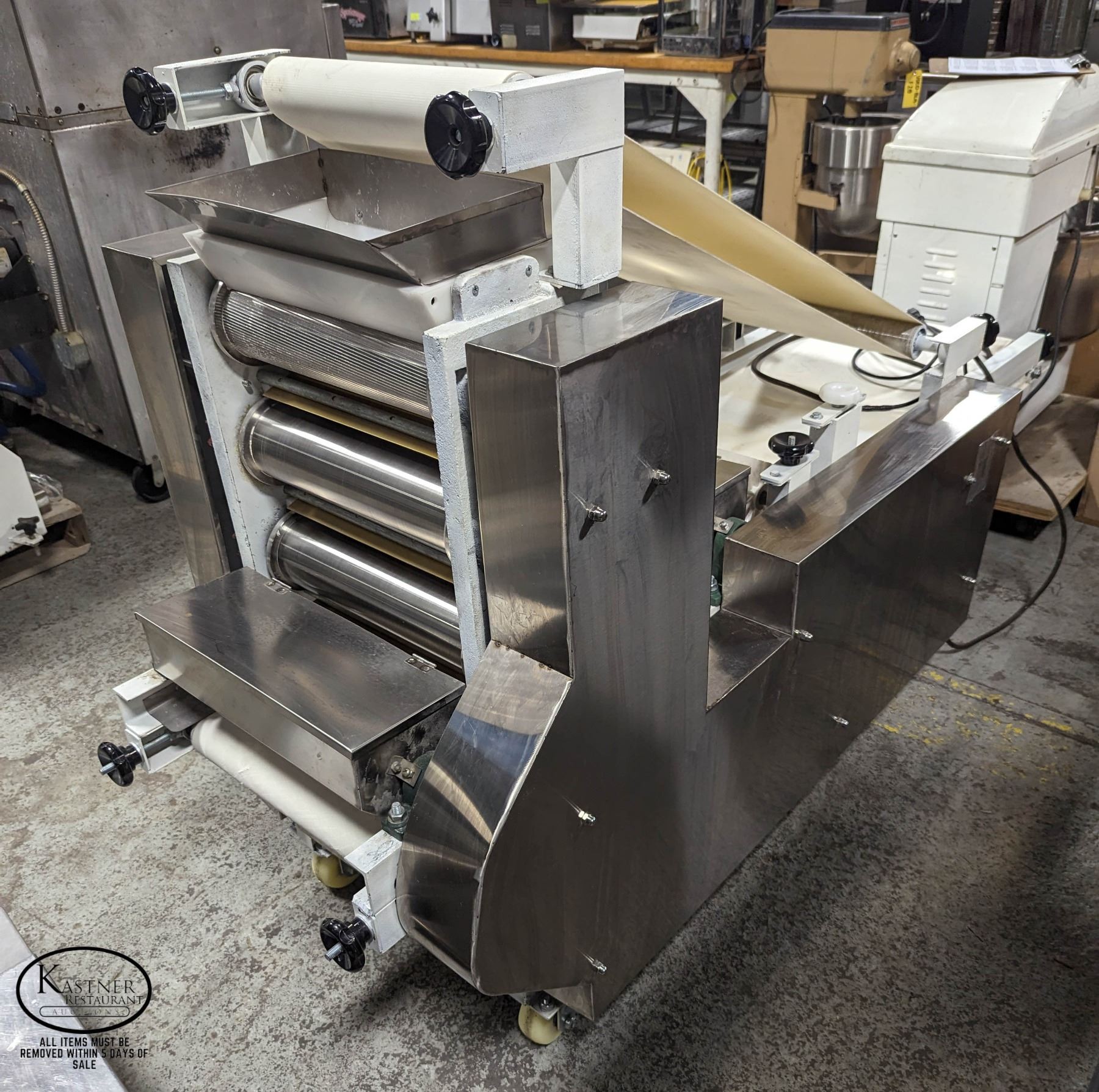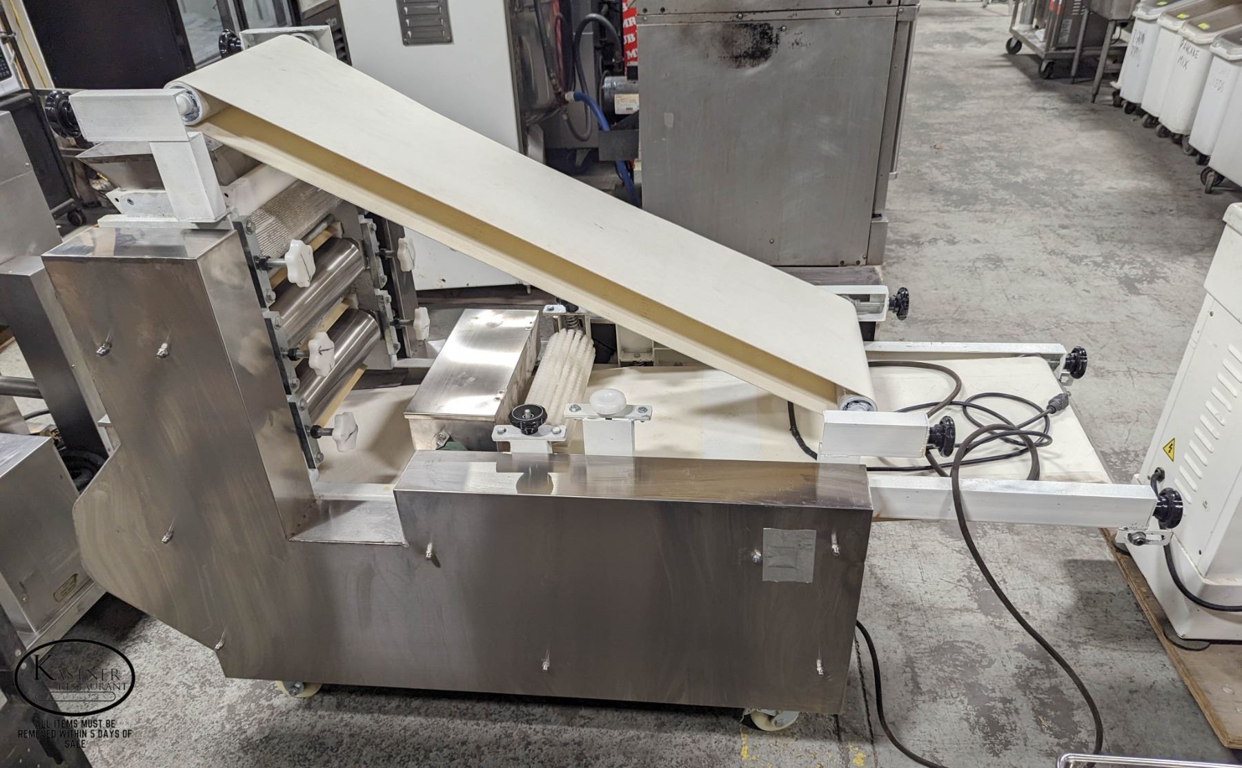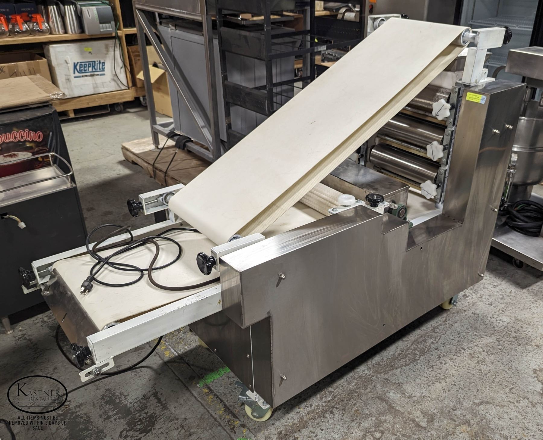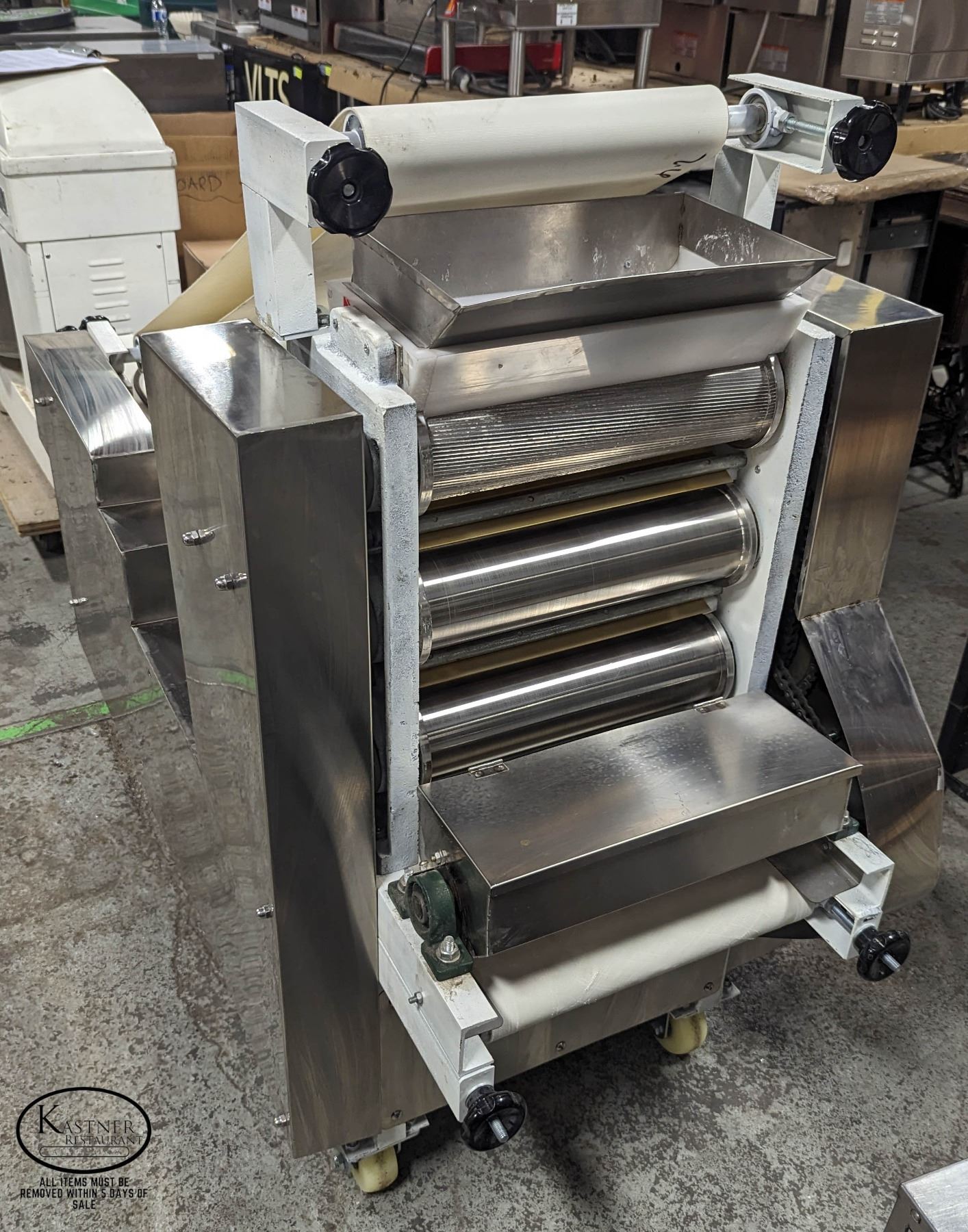 ON CASTERS. STEEL BODY. 120V. 3 STAGE ADJUSTABLE DOUGH TUMBLERS, 2 FLOUR TUMBLER BRUSHES, & RE-FEEDING BELT(MANUAL) FOR EXTRAS. *1 YEAR USED**ALL ITEMS MUST BE REMOVED BY 5PM MONDAY, DECEMBER 18TH, 2023. ALL REMAINING ITEMS WILL BE SUBJECT TO A $6.00 PER DAY STORAGE CHARGE. ANY ITEMS REMAINING AFTER MONDAY, JANUARY 1ST, 2024 WILL BE CONSIDERED FORFEITED. NO REFUNDS WILL BE ISSUED FOR FORFEITED ITEMS.** TO SCHEDULE A PICK UP APPOINTMENT CLICK HERE