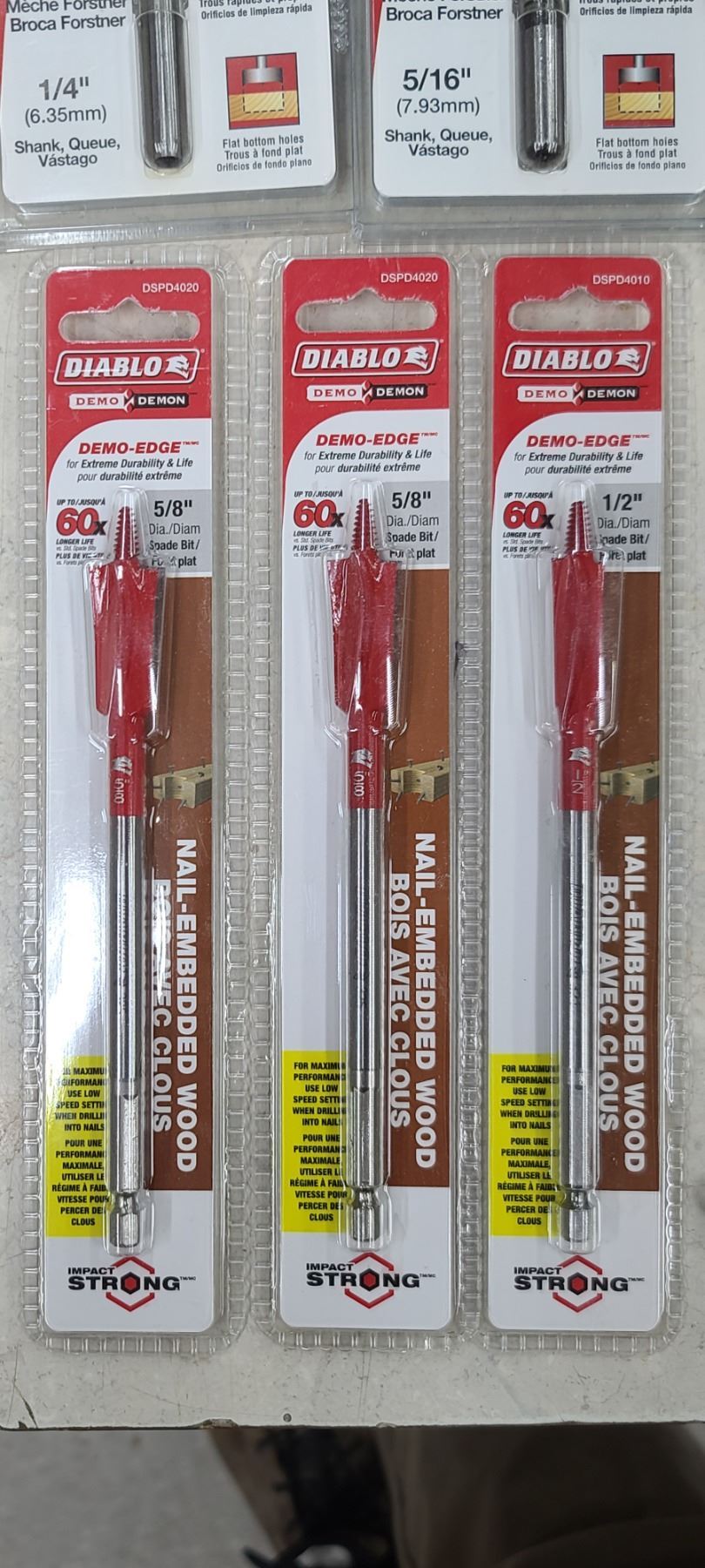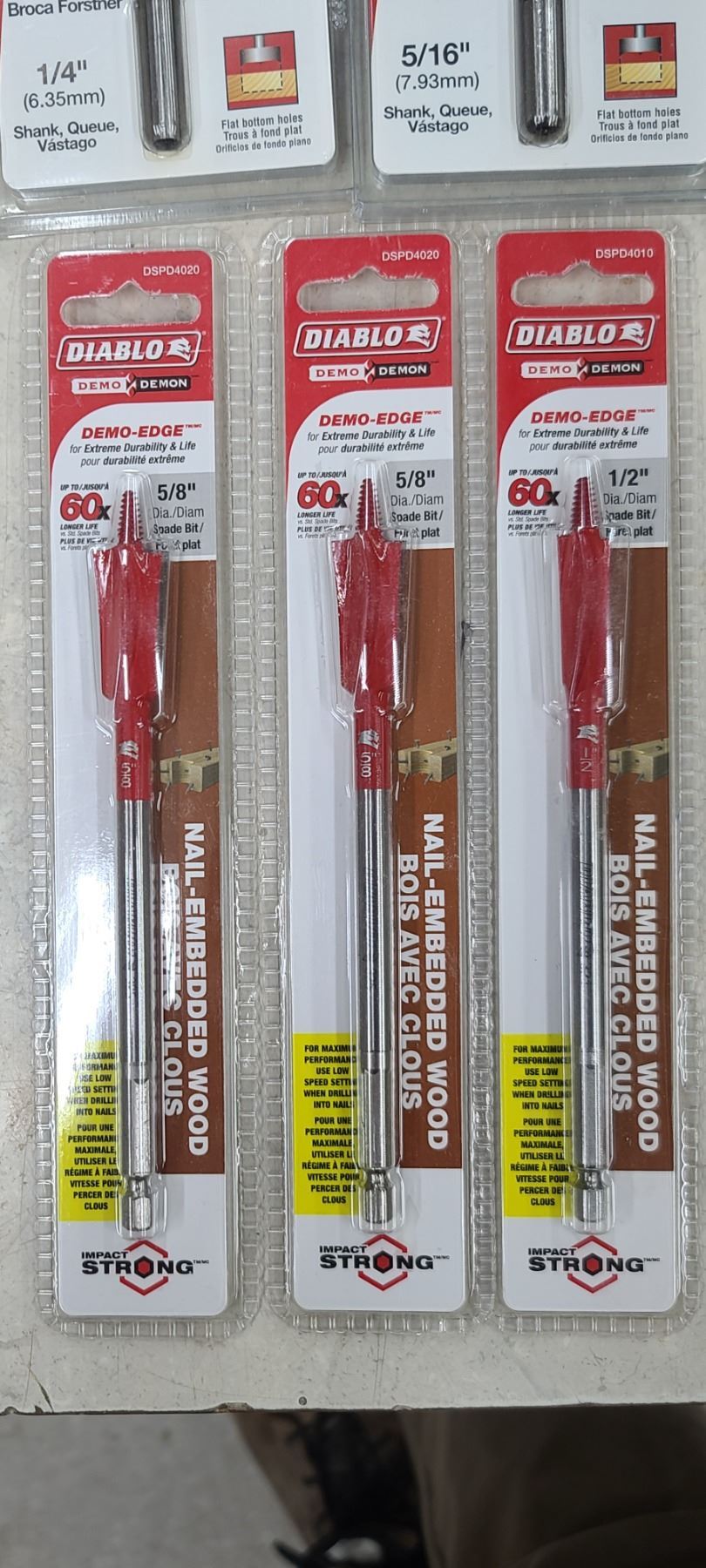 DIABLO DEMO EDGE 1/2" BITS AND FORSTNER BITS 5/8 TO 3/*" AND OTHER