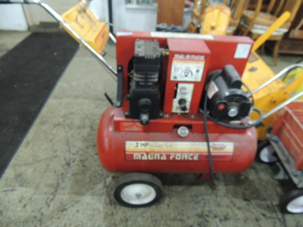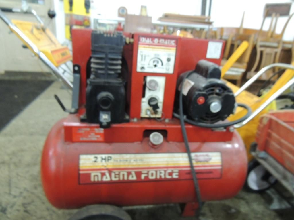 DIAL O MATIC AIR COMPRESSOR 2 HP MAGNA FORCE. AS SHOWN. SEE PTHOO FOR MORE DETAILS.