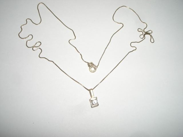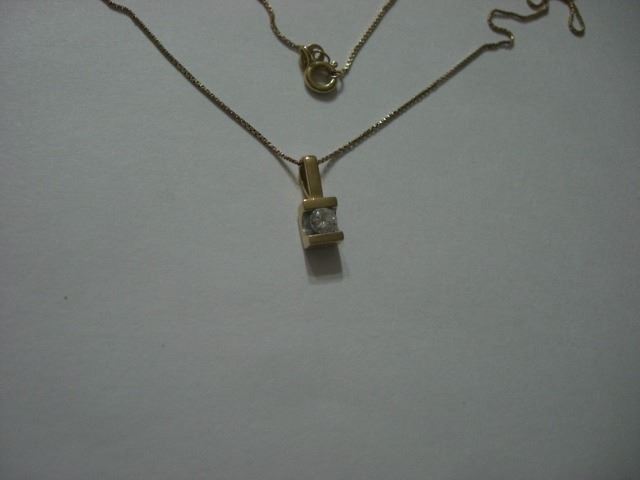 DIAMOND 14K GOLD NECKLACE-DIAMOND TESTED AND IS APPROX .50 TP .75 CARAT GOLD IS STAMPED *ITALY 585* WHICH IS 14K 58.5 GOLD-DIAMOND CHART SHOWS APPROX. VALUE WITHOUT CHAIN OF $1400!! DIAMOND NECKLACE CAME OUT OF SAFE BOX!! ***Coin, Currency & All Items Listed in this auction - Grades, Conditions and Values are not Safe Deposit Coins LLC Responsibilty. Grades, Condition and Values are determined by Consigner(s) & Buyers