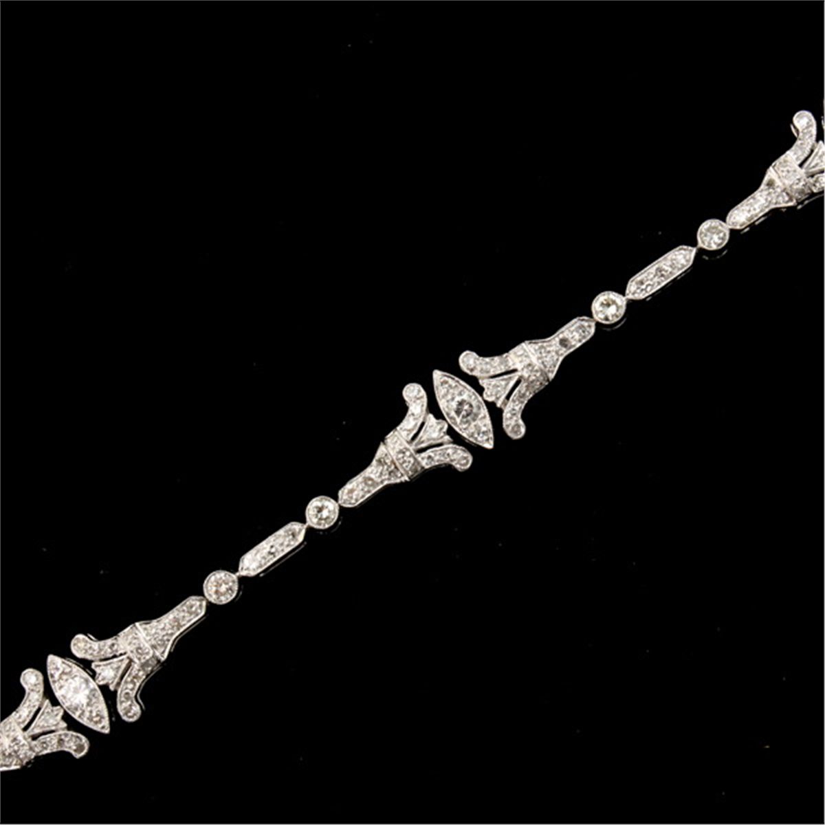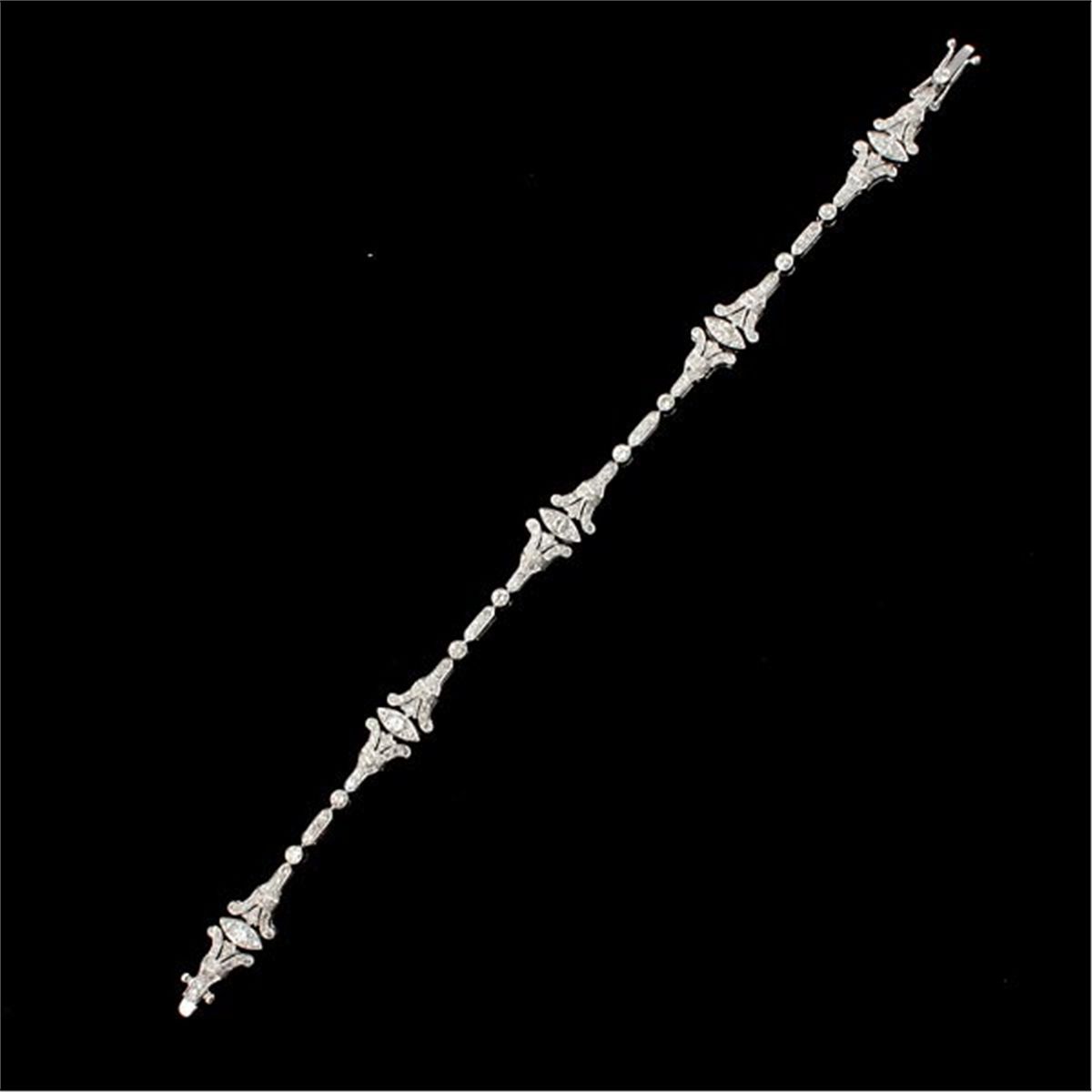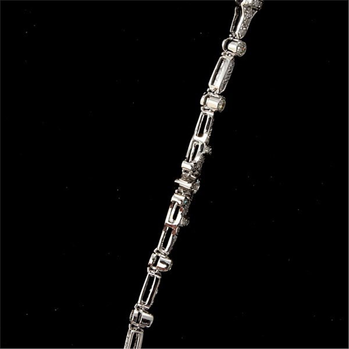 DIAMOND, 18K WHITE GOLD BRACELET. Featuring one hundred and twenty-three round-cut diamonds weighing a total of approximately 1.90 ct., bezel and bead set in an 18k white gold articulated mounting completed by a tongue and groove clasp with two figure eight safeties forming a 7 1/4 inch bracelet. 8.1 dwts