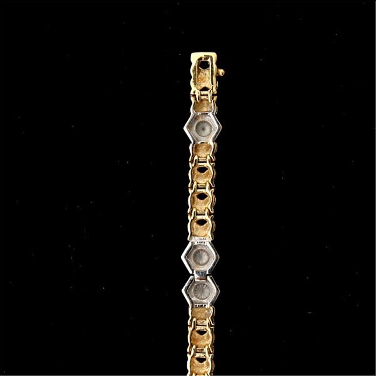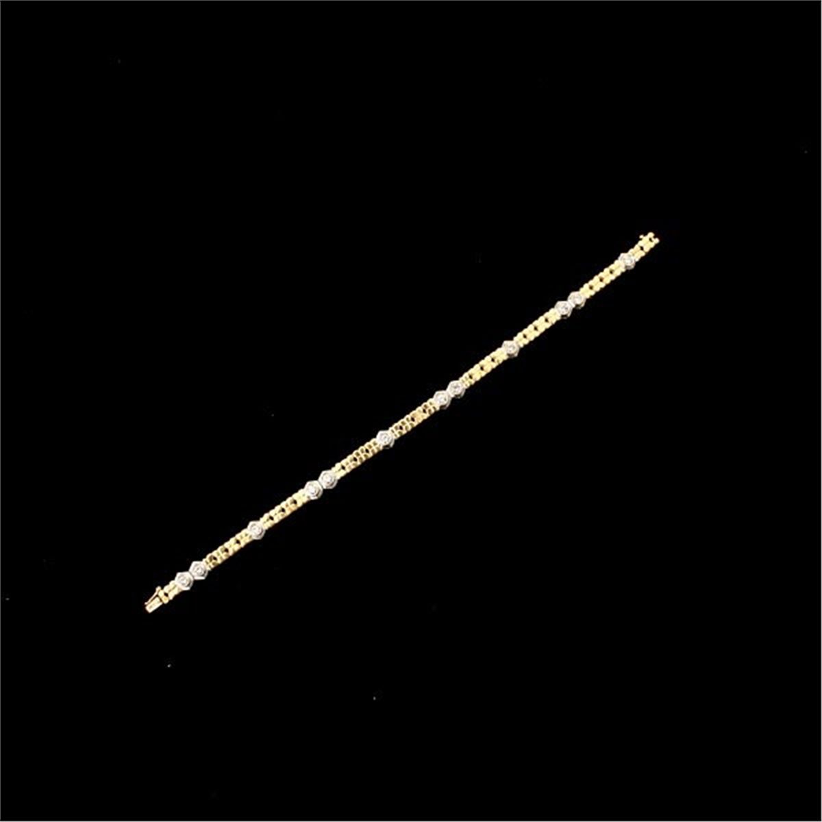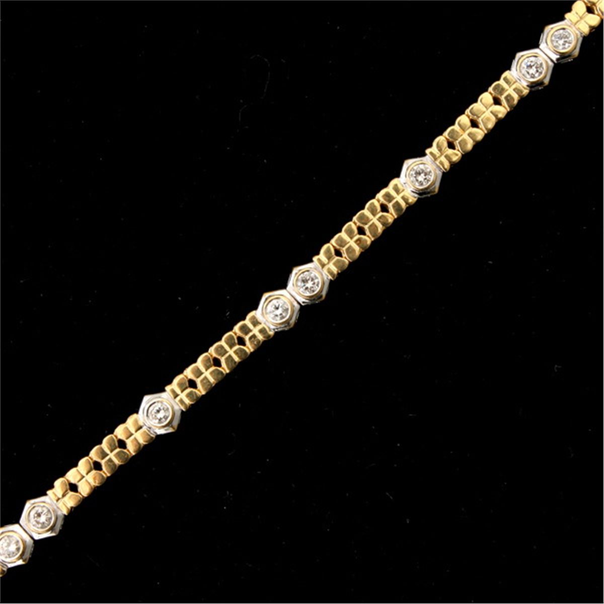 DIAMOND, 18K YELLOW GOLD BRACELET. Featuring twelve full-cut diamonds weighing a total of approximately 0.80 ct., bezel set in a 14k yellow gold articulated linked mounting completed by a tongue and groove clasp with a figure eight safety forming a 6 1/2 inch bracelet. 6.90 dwts