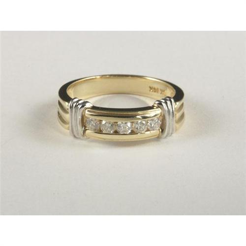 MAN'S RING: Handsome 14k yellow and white gold man's ring accented with diamonds. The diamonds measure approximately 0.50 ctw, have SI3 to I2 clarity and I color. Appraisal included.