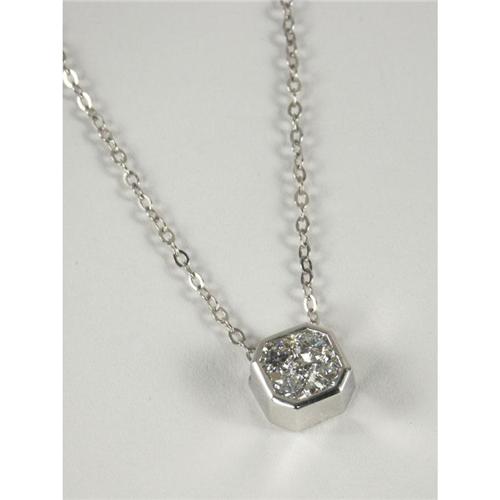 PENDANT WITH CHAIN: Geometric 14k white gold pendant with chain with diamonds. The diamonds measure approximately 0.50 ctw, have VS1 to SI1 clarity and H color. Appraisal included.