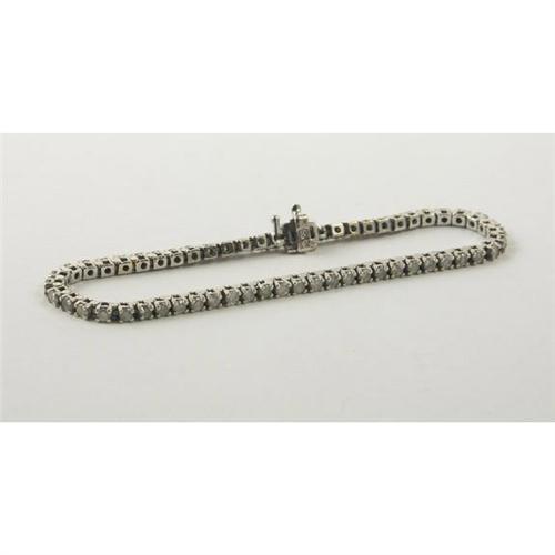 BRACELET: Shimmering 14k white gold diamond tennis bracelet. The diamonds measure approximately 1.00 ctw. No appraisal is included with this lot.