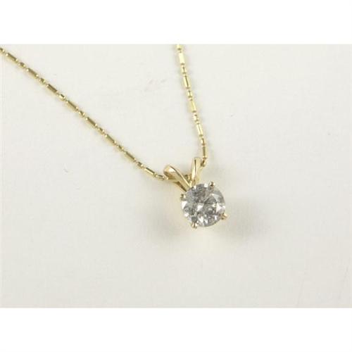 PENDANT WITH CHAIN: Classic 14k yellow gold pendant with chain set with a single round brilliant cut diamond. The diamond measures approximately 0.88 ctw, has I1 clarity and K to L color. Appraisal included.