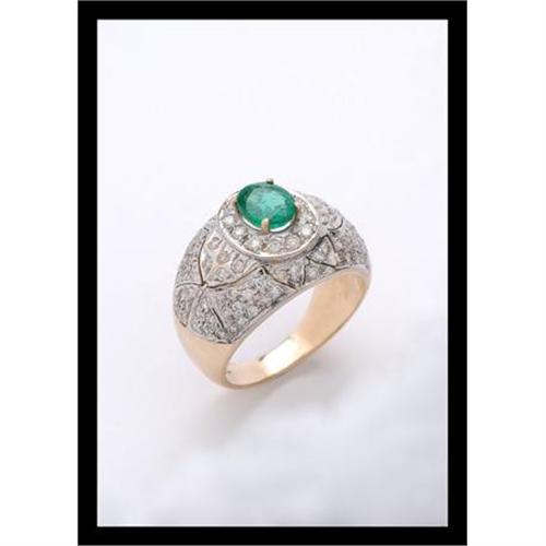 <tr><td>Title:DIAMOND AND EMERALD RING IN YELLOW GOLD</td></tr>