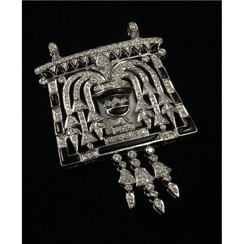 PENDANT: Architectural 18K white gold diamond and onyx pendant. Diamonds measure approximately 2.60ctw. Appraisal included.