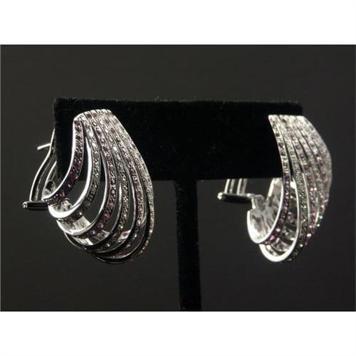 EARRINGS: Pair of glittering 18K white gold earrings set with diamonds and pink sapphires. Lot is missing one diamond. Appraisal included.