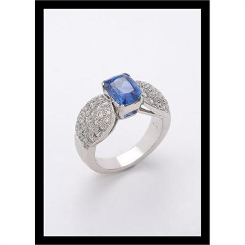 A beautiful diamond and sapphire ring in 18 ct white gold .Sapphire 2.48 Ct , diamond 0.99 Ct , white gold 7.468 Grams. Ring size is 6.5 , upon request the ring size can be modified to 2 sizes minus or plus .Retail value $ 8000.