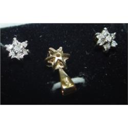 DIAMOND EARRINGS & PENDANT SET. 14 KT. Gold. Approx. .25 ct.