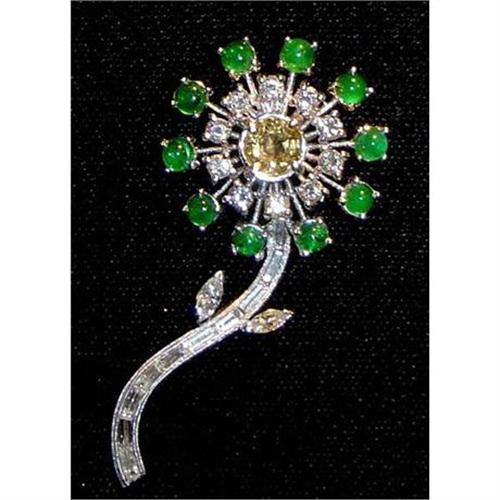 DIAMOND, EMERALD AND TOPAZ PIN. Circa. 1930