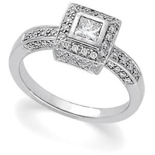 14k White Gold Engagement Ring featuring a center Princess Cut Diamond encircled by smaller round Diamonds, with Diamonds, either side as well. The Diamonds are Magnificent! They are 'SI' Clarity and 'H' Color and they really DO sparkle! The Diamond Total Weight= .55 CARATS! This Princess Cut Diamond Engagement Ring is a size 6 and I can resize it for you.