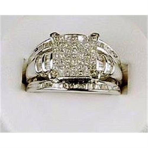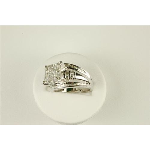 This VERY IMPRESSIVE Bridal Wedding set features both Square Princess Cut and Baguette Diamonds! The Engagement Ring is 14k White Gold and it features a square shaped cluster of 36 Princess Cut Diamonds - it looks like one big Diamond!! There are Baguette Diamonds set each side as well as on the 14k White Gold Wedding Bands. The DIAMOND TOTAL WEIGHT = 1.50 CARATS!!
