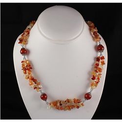 Fashion Jewelry Carnelian Chip Beads Necklace **|**|** Fashion Jewelry Carnelian Chip Beads Double Row Design Necklace with Round Bead Connector ; MSR