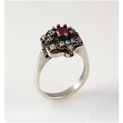 Natural Stone Statement Victorian Design Ring **|**|** 5.06g Natural Stone 5MM Round Ruby Victorian Design Ring w/ cz diamonds; stamp 925 ; MSRP: $0