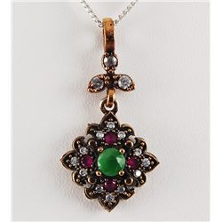 Chrysoprase Natural Stone Victorian Design Pendant **|**|** 15.90g Chrysoprase Natural Stone Drop Pendant in Victorian Design w/ CZ diamonds; 925 stam