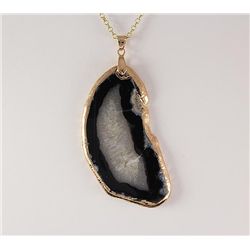 Organic Natural Black White Geode Big Slice Pendant **|**|** 108.50CARAT Natural Stone Pendant a Black and Half Transparent Geode Agate Slice with Bla