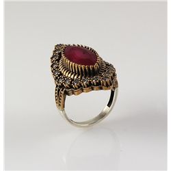 Natural Stone Cocktail Victorian Design Ring **|**|** 9.14g Natural Stone Cocktail Ring Victorian Design 16x9MM MQ Ruby center w/ cz dia; stamp 925 ;