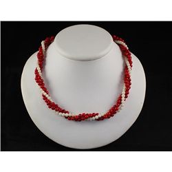 Vintage Pearl Coral Red & White Twisted Necklace **|**|** 221.00CARAT Vintage 80s Rope Choker Necklace Made of Coral and Pearl Beads with magnet...