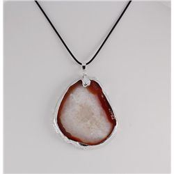 Natural Stone Ocean Blue Agate Big Slice Pendant **|**|** 150.00CARAT Natural Stone Slab Faceted Ocean Blue Agate Pendant with Black Rubber Cord Neckl