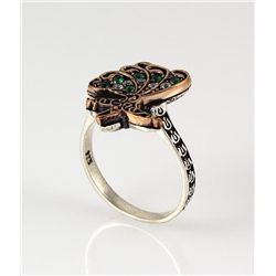 Natural Stone Statement Victorian Design Ring **|**|** 4.67g Natural Stone Emerald Beryl Victorian Design Ring w/ cz diamonds; stamp 925 ; MSRP: $0