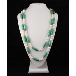 Knotted Turquoise and Pearl Long Necklace **|**|** 1240.50CARAT Jessica Knotted Necklace Freshwater Cultured Pearl 9MM w/ Turquoise Long Necklace ; MS