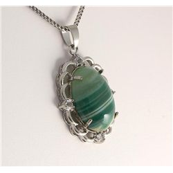 Natural Stone Minty Green Oval Agate Pendant **|**|** 8.80g Natural Stone Cabochon Mint Green Agate Silver Polish Pendant ; MSRP: $0