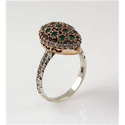 Natural Stone Cocktail Victorian Design Ring **|**|** 16.15g Natural Stone Cocktail Ring Victorian Design Ruby and Emerald Beryl; stamp 925 ; MSRP: $1