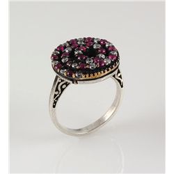 Natural Stone Statement Victorian Design Ring **|**|** 4.62g Natural Stone Ruby Victorian Spiral Design Ring w/ cz diamonds; stamp 925 ; MSRP: $0