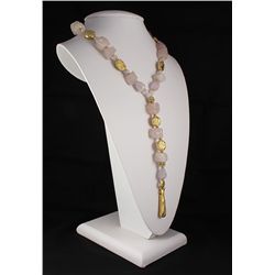 Natural Stone Chunky Raw Rose Quartz Necklace **|**|** 605.00CARAT Feminine Y Handmade Chuncky Rose Quartz Necklace w/ Gold Plated Vintage Design Conn
