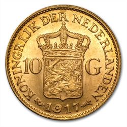 Netherlands Gold 10 Guilders (1875-1933) AGW .1947 **|**|** Year: 1875-1933 ; Mint Mark: Almost Uncirculated ; Grade: N/A ; Denomination: 10 Guilders