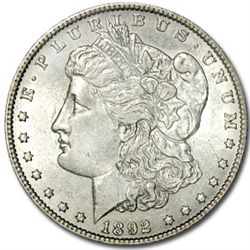 1892 Morgan Dollar - Almost Uncirculated-50 **|**|** Year: 1892 ; Mint Mark: AU-50 ; Grade: P - Philadelphia ; Denomination: 1 ; MSRP: $200